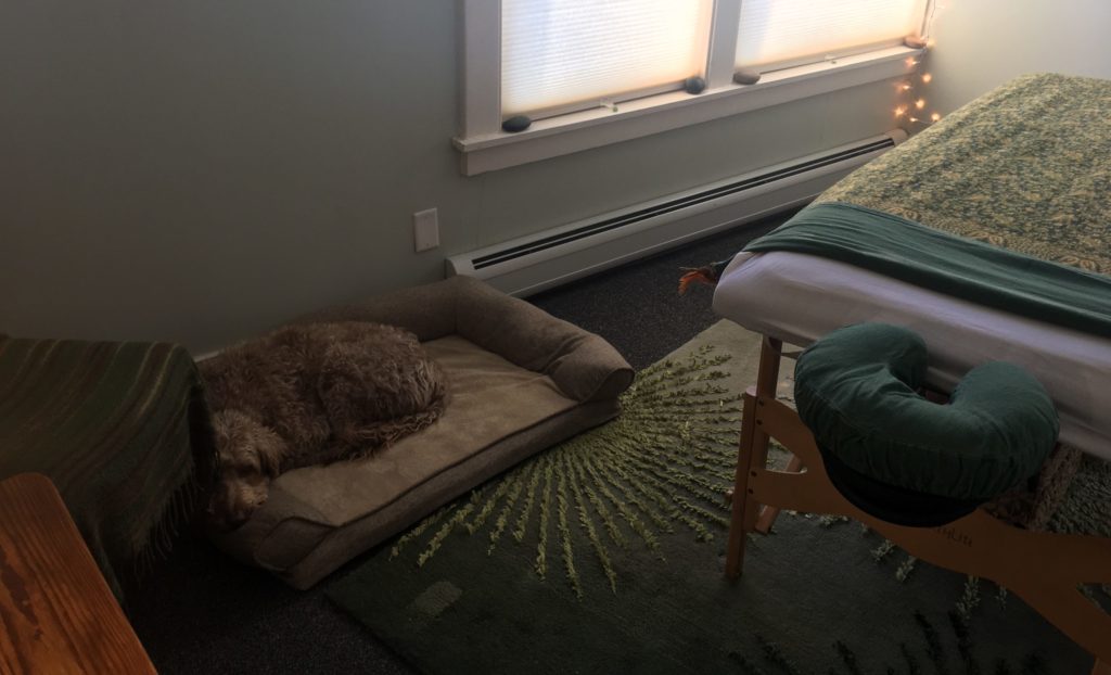 You’ll also meet me, and my therapy dog who accompanies me to most sessions. My dog has been coming to sessions with me since 2012, when I trained him to greet my clients, then relax on his bed for the rest of the session. There is something so calming about a calm dog. He helps reduce anxiety, and provides a warm welcome. Of course if you are not a dog person, let me know so he can stay home!